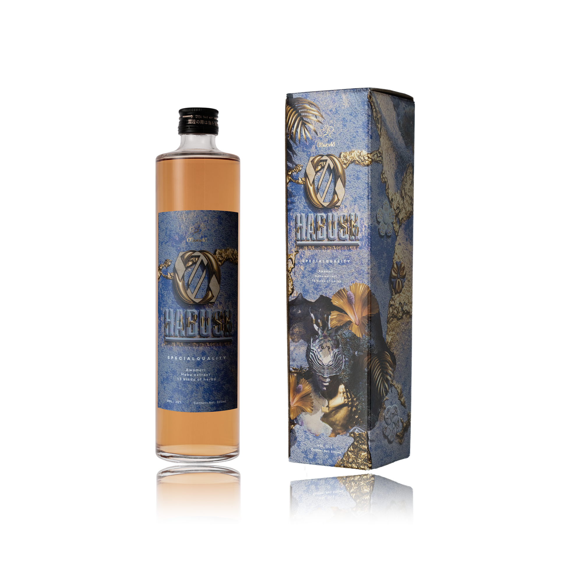 HABUSH is an original Habu liquor made by blending 13 kinds of herbs used in traditional Chinese medicine with Okinawa's local liquor, Awamori, and extract of the Habu snake, a source of vitality.